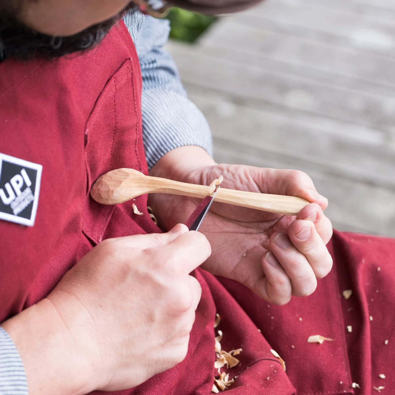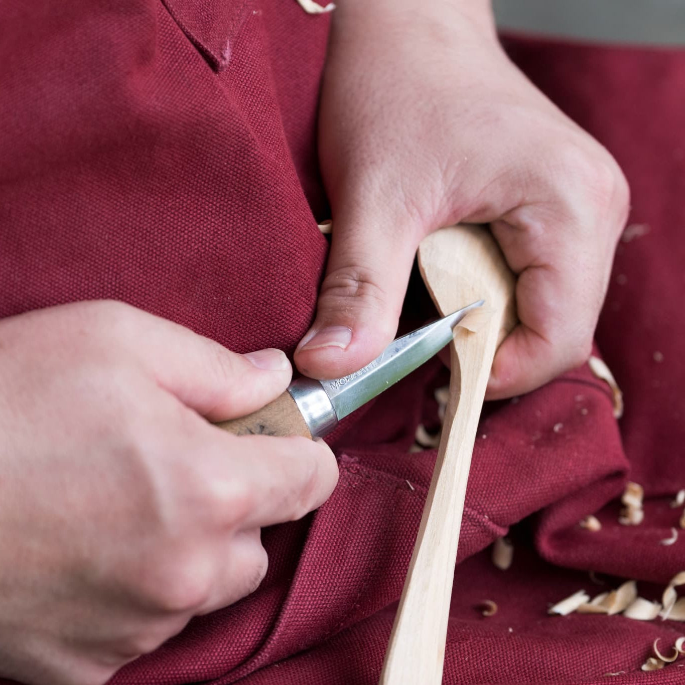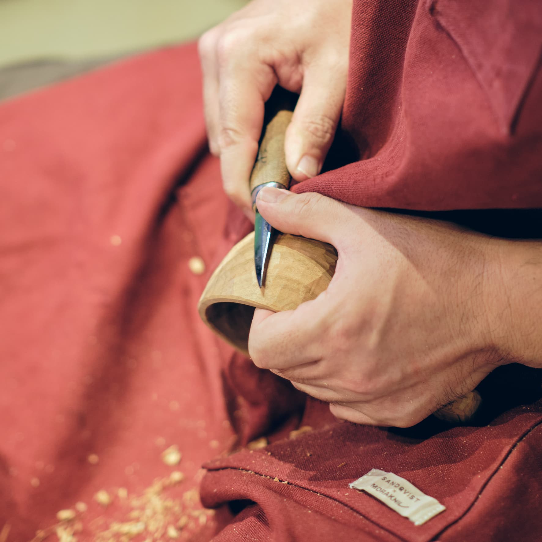 欧米が発祥と言われる「グリーンウッドワーク」は、切りたての瑞々しい間伐材(生木)を無駄にせず、暮らしの道具として削り出すウッドカルチャー。モーラナイフのウッドカービングナイフは、グリーンウッドワークでは欠かせないナイフとして、多くのグリーンウッドワーカーに親しまれてきました。柔らかい生木をサクサクと削る感覚は病みつきになる人が多く、グリーンウッドワークの輪は、ここ日本でも林業が盛んな地域を皮切りに徐々に広まってきています。カービングナイフを使用して、世界にひとつしかないオリジナルのアイテムをつくるグリーンウッドワークをお楽しみください。