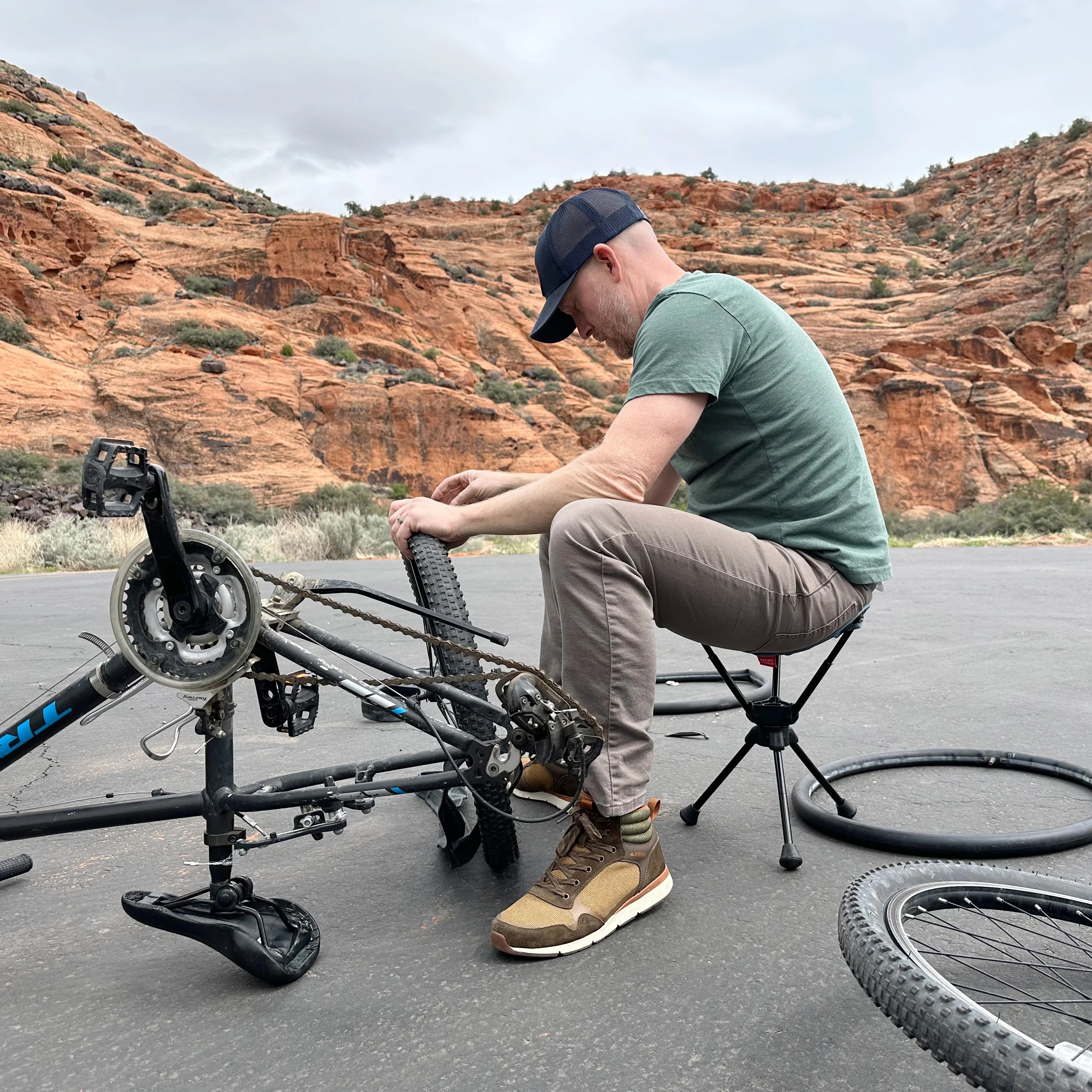 座面が回転することで、様々な作業をスムーズに行うことができます。例えばキャンプの時には、焚き火を触りながら回転して調理の準備をしたり、釣りをしている時にくるっと回って後ろの道具を取ったりと、様々な作業の際にわざわざ椅子を動かす必要がないので、導線が整い、ストレスなく作業効率が上がります。