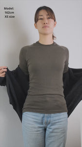 ※全体的に少し長めに作られたデザインのため、特に女性や細身の男性は通常着ているものよりもワンサイズ小さいものを選ぶのがおすすめです。