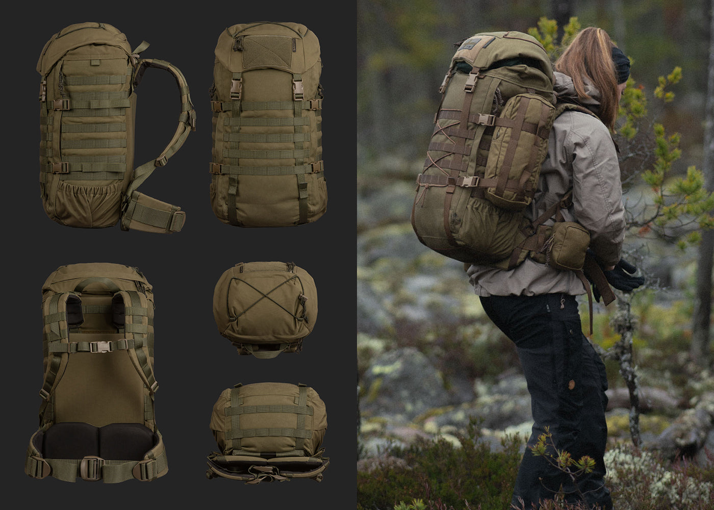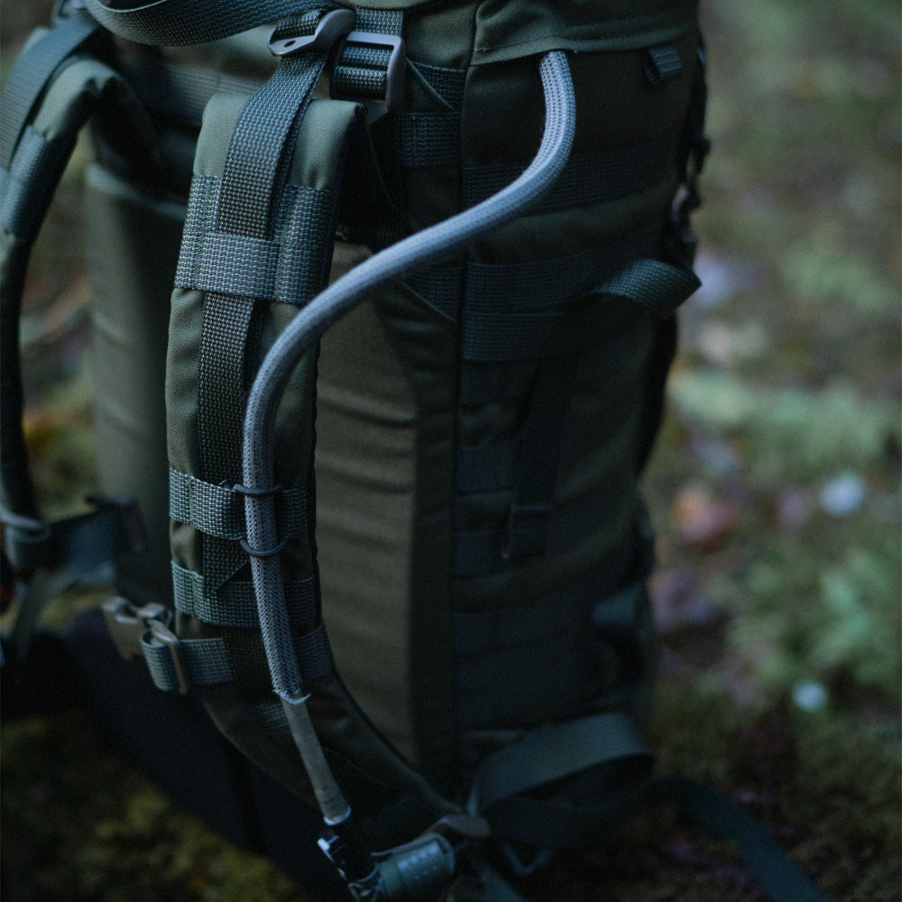 容量40Lのバックパック本体と、取り外し可能な8Lのリッドを備え、便利に活用できるポケットやPALSウェビングを多く配置。衣類、寝具、食料、飲料水など、数日の野営に必要な荷物に対応するほか、オプションのポーチ類と組み合わせることで、様々にアレンジすることが可能です。