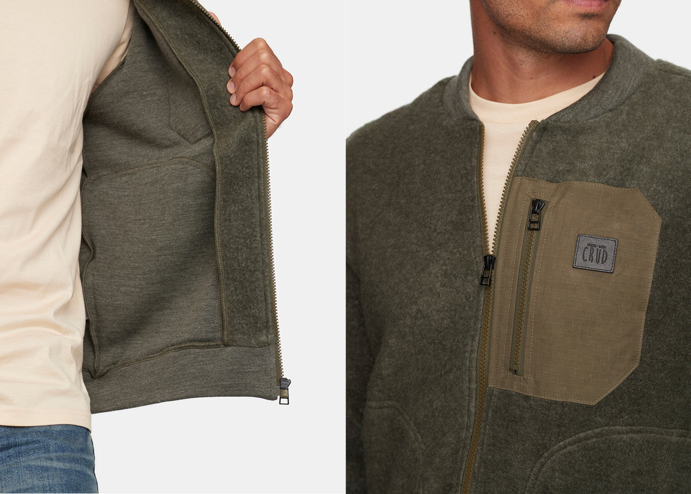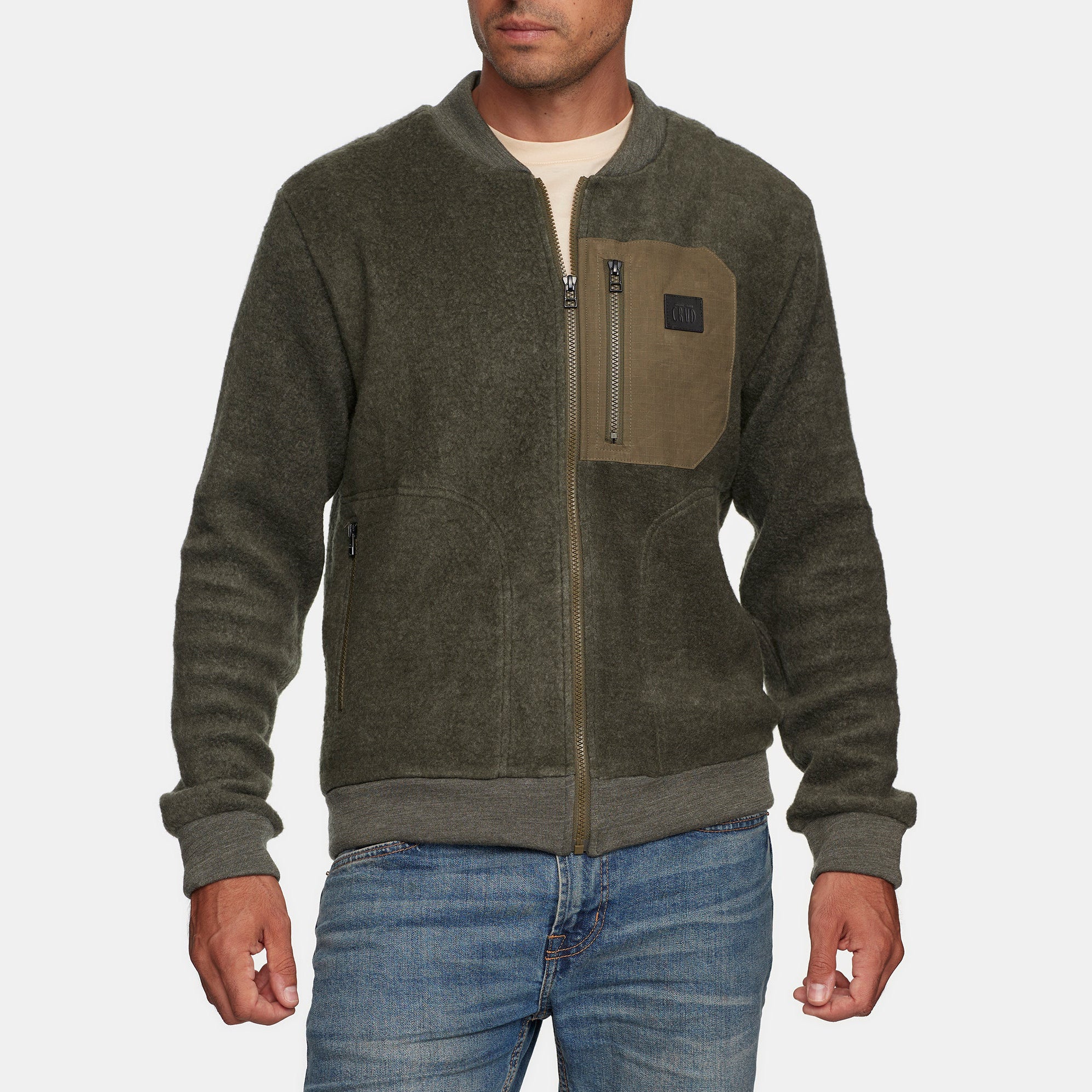 ボンバージャケットテイストの少し短めの丈のシルエット。ボディは表側が起毛仕上げ、内側がフラットな生地構造で、フリースのような感覚で着用できます。腰部の2つのハンドポケットと、胸ポケットが1つ付属し、鍵やスマートフォンなどの必需品をすっきり収納できる機能性も備えながら、ファッション性も高い一着です。