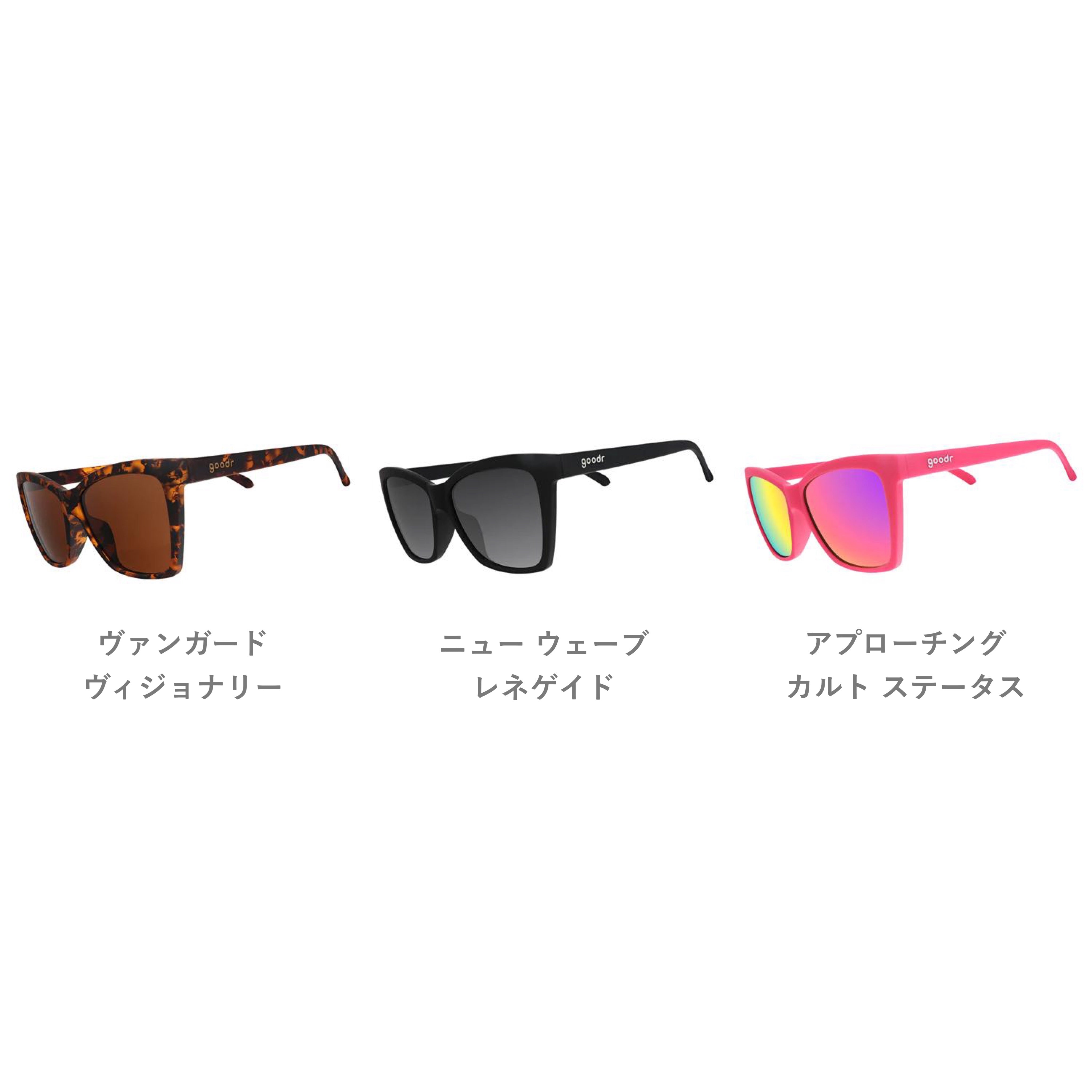 4つのF…「FUN(遊び心)」「FASHIONABLE(ファッション性) 」「FUNCTIONAL(機能性)」「AFFORDABLE(手頃な価格)」をコンセプトとし、「滑らない」「跳ねない」「ALL偏光レンズ」の機能性に加え、良心的価格で高いファッション性を備えた「goodr」は、あらゆるアウトドアアクティビティやタウンユースにも活用できる、カリフォルニアのハッピーな要素を盛り込んだ遊び心満載のサングラスブランドです。