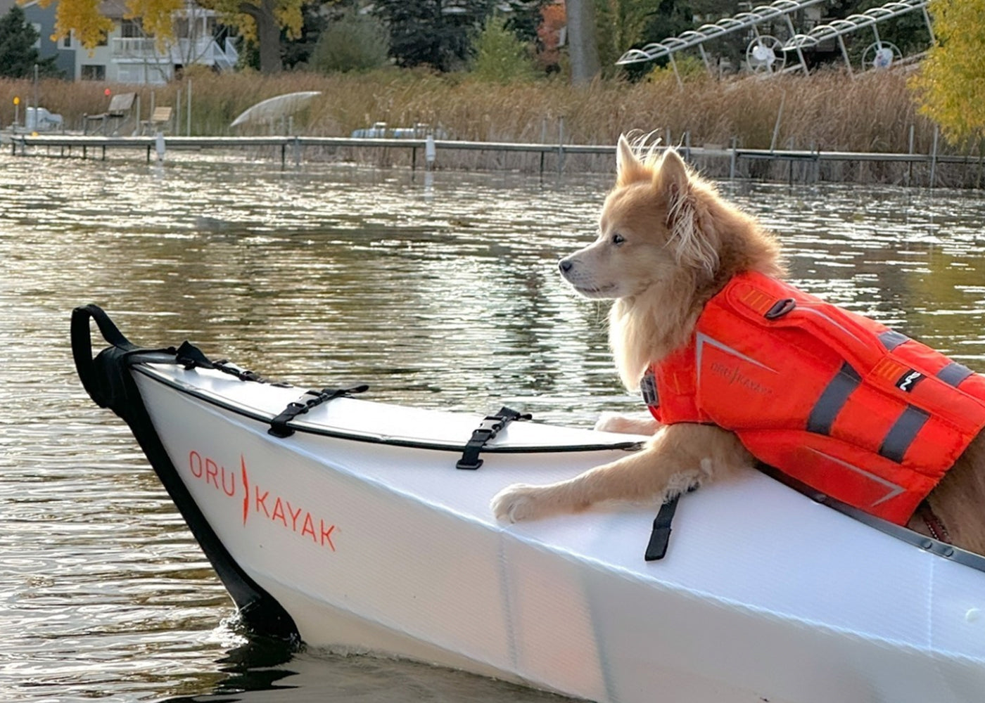 人がカヤックで必ずライフジャケットを着用するように、同乗する愛犬にとってもライフジャケットは必要なもの。オルカヤックのCFD (ケーナイン フローテーション デバイス) は、そんな大切な相棒を守るための大事なアイテムです。愛犬がカヤックの先端で日向ぼっこを楽しむ時も、水しぶきを上げて遊ぶ時も、パートナーの安全をしっかりサポートします。