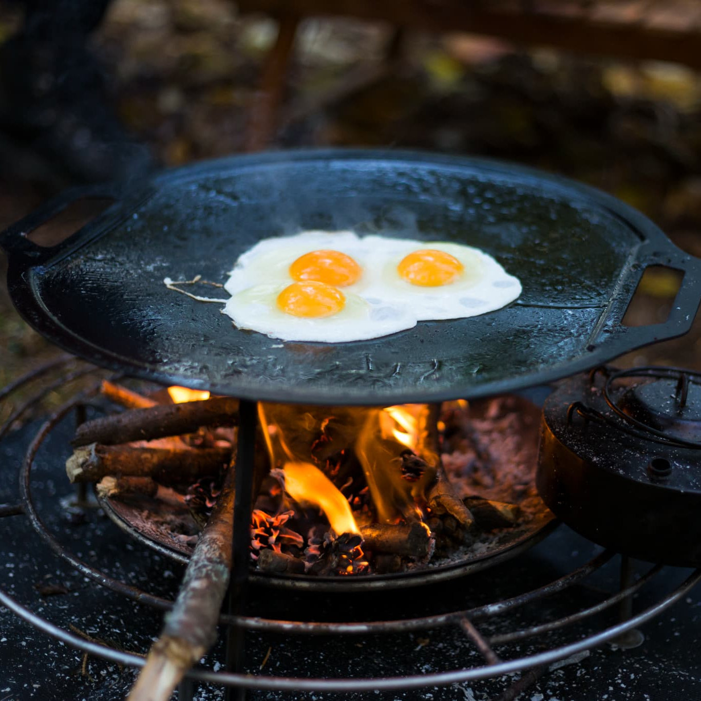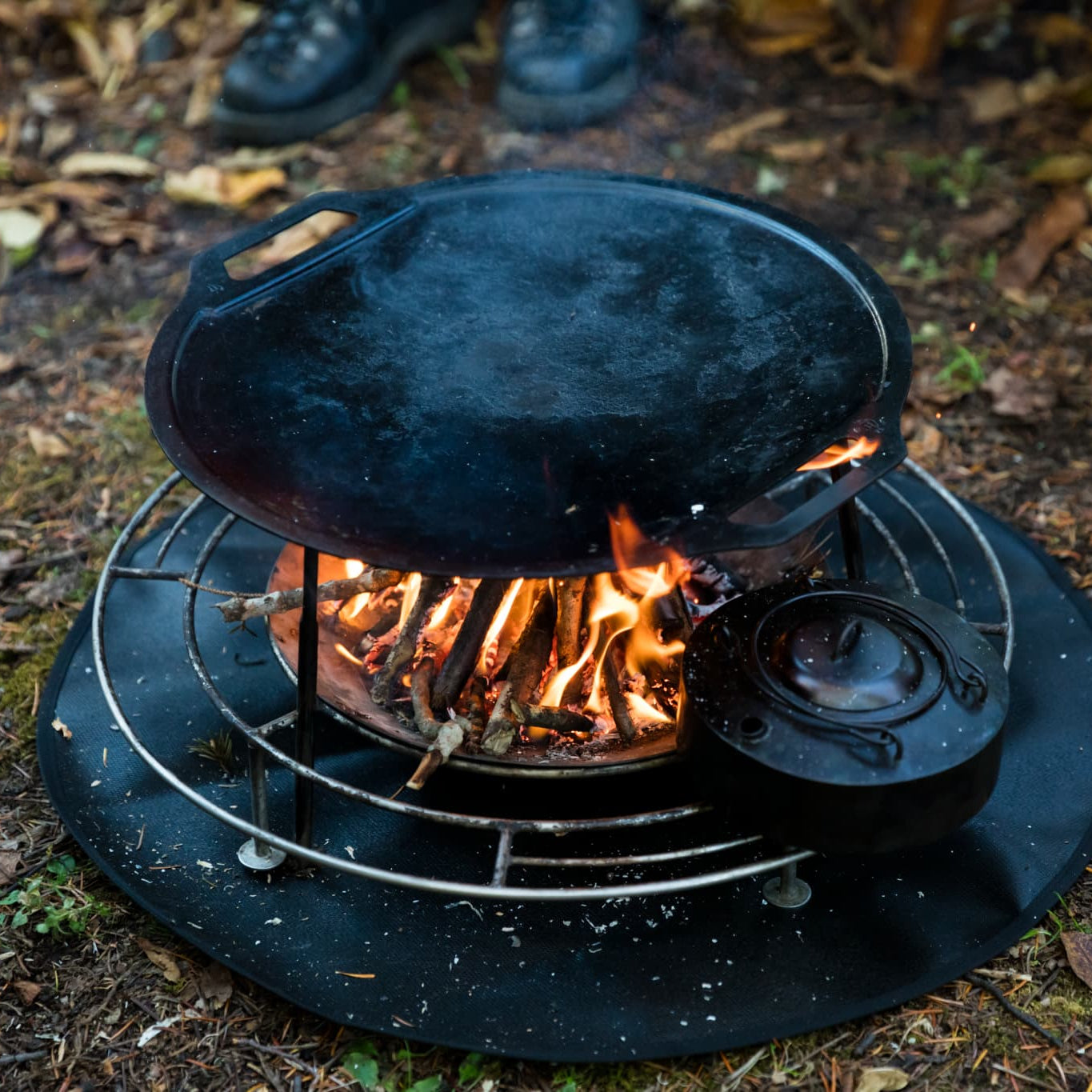 北欧の雄大な自然の中で、気軽にアウトドアクッキングを楽しむために作られたこのグリドルは、スウェーデン製の高品質なカーボンスチール製。熱伝導が良く、どんな料理でもじっくり熱が入り美味しく仕上がります。使いやすいサイズ感の40cmグリドルは、ファミリーやグループでの使用におすすめ。人数分の朝食や豪快な肉料理、炒め物など万能に活用できます。また、軽量なグリドルは鉄板から脚を取り外すことでコンパクトになり、あらゆる所に持ち出して楽しめます。22cmの高さで、直火でも可能な場所や焚き火台と併せて使用可能。グリドルの脇にトナカイファーを敷いて座れば、北欧の伝統的なアウトドアスタイルの調理を楽しむことができます。