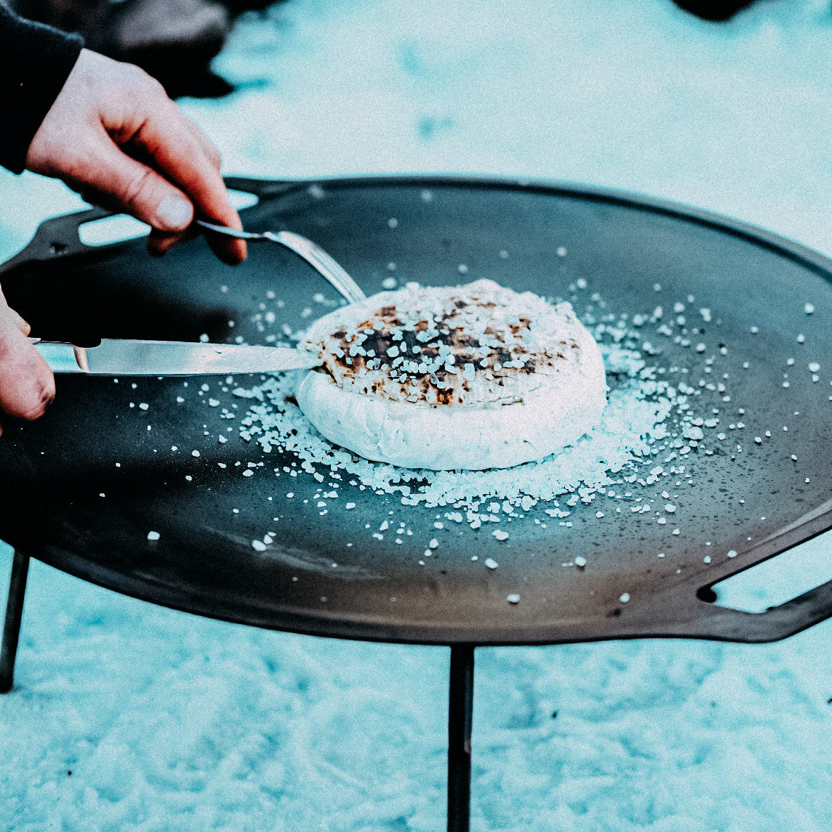 北欧の雄大な自然の中で、気軽にアウトドアクッキングを楽しむために作られたこのグリドルは、スウェーデン製の高品質なカーボンスチール製。熱伝導が良く、どんな料理でもじっくり熱が入り美味しく仕上がります。大人数の調理にも対応する50cmのグリドルは、グループでのキャンプやイベントでも活躍するサイズ。ハムエッグをたくさん作って朝食にしたり、お肉や野菜をグリルしたり、鉄板の上で複数の調理をすることも可能です。また、軽量なグリドルは鉄板から脚を取り外すことでコンパクトになり、あらゆる所に持ち出して楽しめます。25cmの高さで、直火でも可能な場所や焚き火台と併せて使用可能。グリドルの脇にトナカイファーを敷いて座れば、北欧の伝統的なアウトドアスタイルの調理を楽しむことができます。