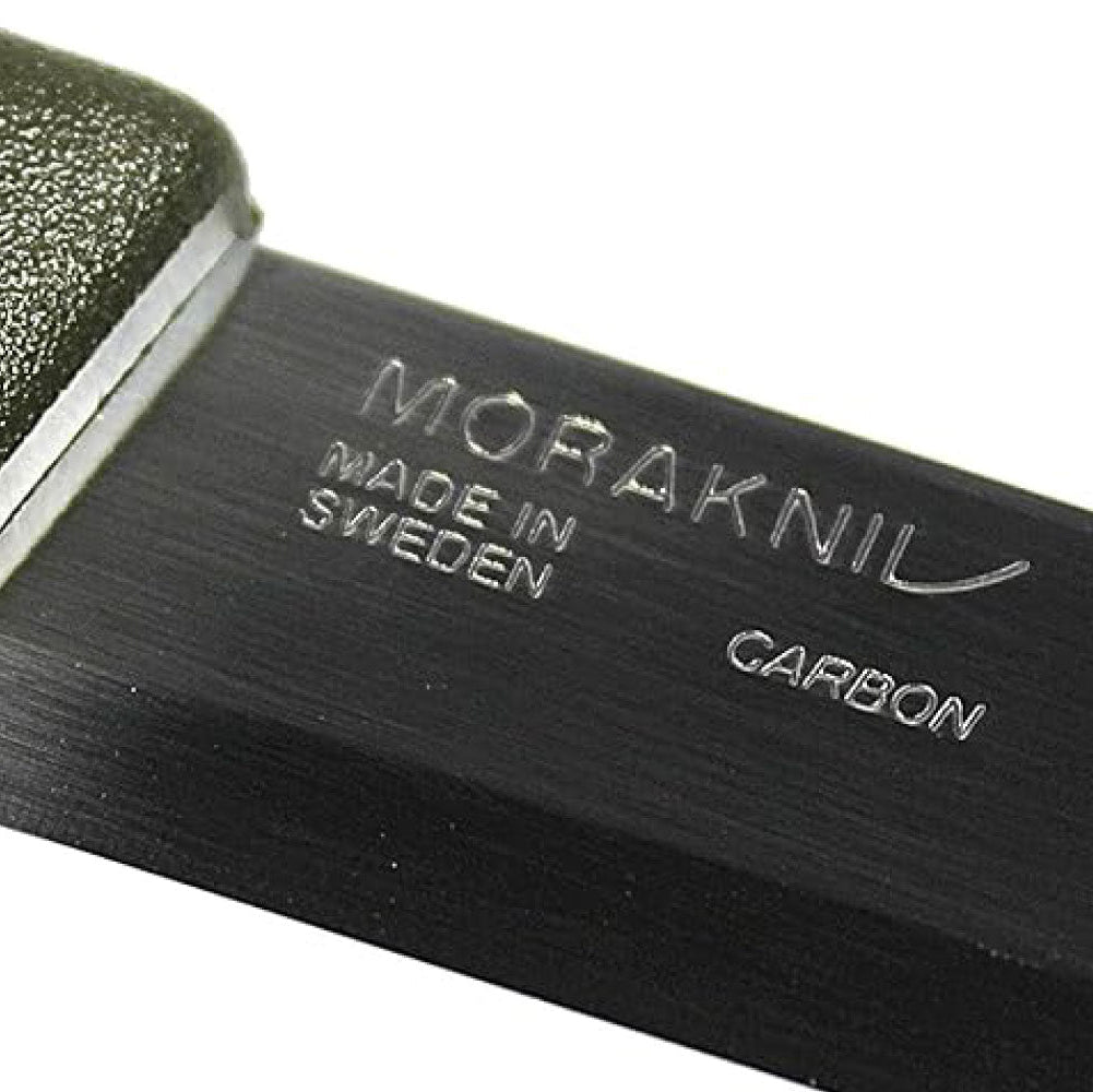 スカンジナビアンエッジでグラインドされた、鋭い切れ味を備えた高品質のカーボンスチールは、ドイツの「WAELZHOLZ」社の炭素鋼を使用し、モーラナイフの自社工場で独自の加工を施しています。1%の炭素を含むブレードは、長期間にわたって最大の切れ味を発揮するよう研ぎ直しがしやすくなっており、靭性のある吸い付くような切り心地が特徴です。またコンパニオンシリーズのブレードは、刃元から刃先に向かってアール部分がなだらかに上がっており先端が細く尖っていることから、刃先で木材を削る事やくり抜く作業も得意なナイフです。