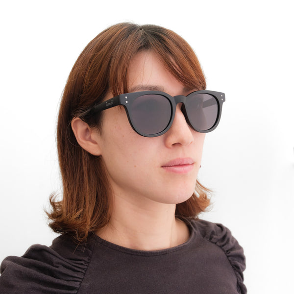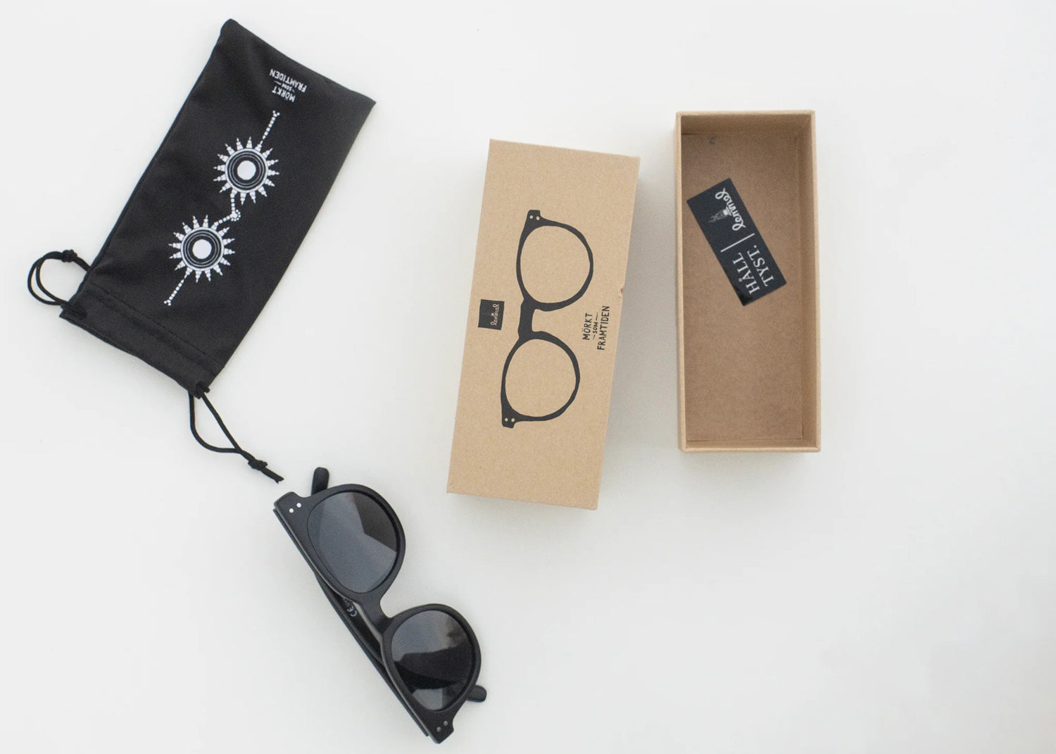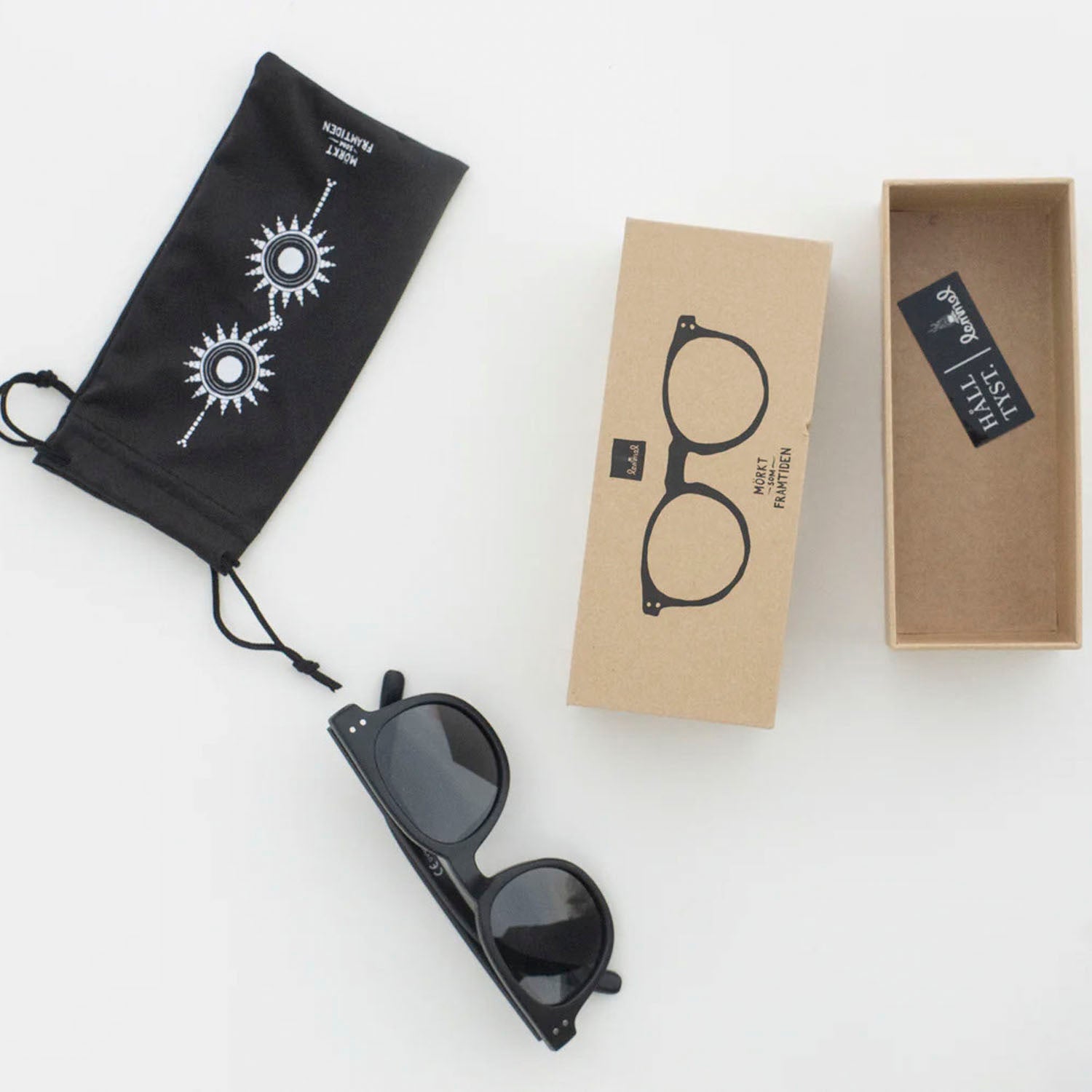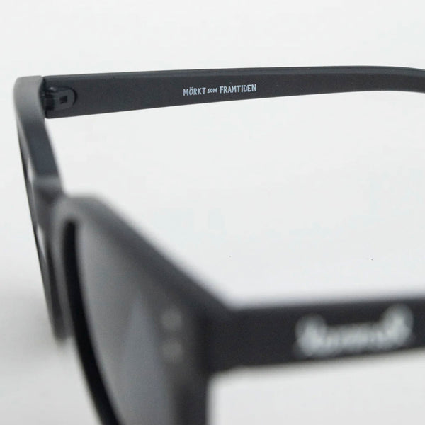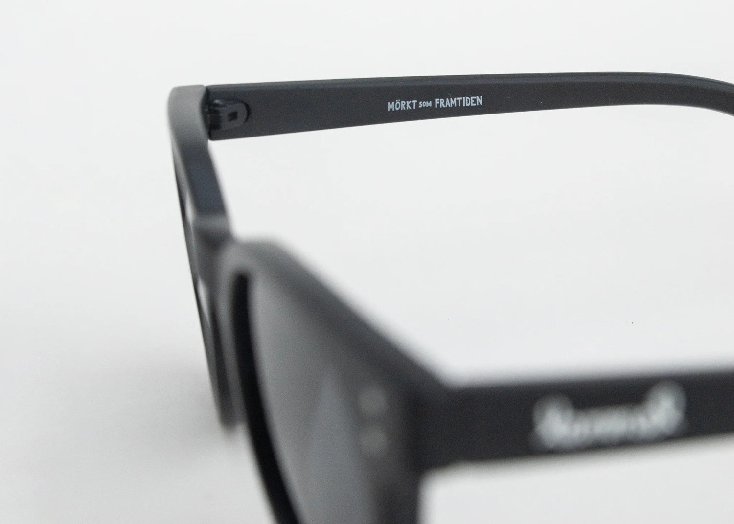 テンプルの裏には、スウェーデン語で「お先真っ暗」のサイン。物理的な暗さと、未来の展望の暗さをかけた、レンメルコーヒーらしいウィットに富んだサングラスは、どんな場面でも活用しやすい丸みを帯びたボストン型の偏光サングラスです。フレームは100%リサイクルプラスチック、リサイクルペットボトルからできた収納ケースなど、環境に優しい素材を多く使用しています。