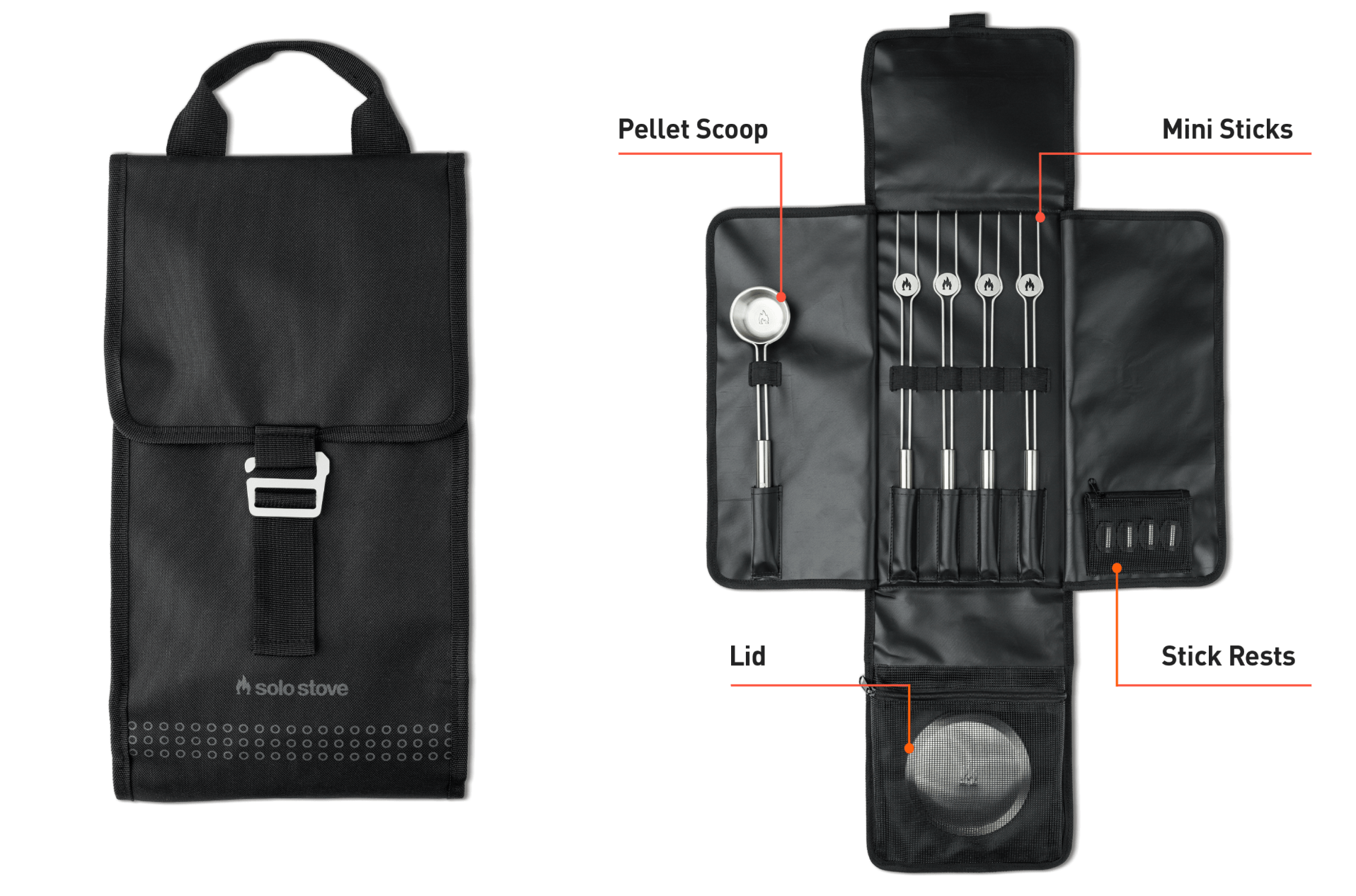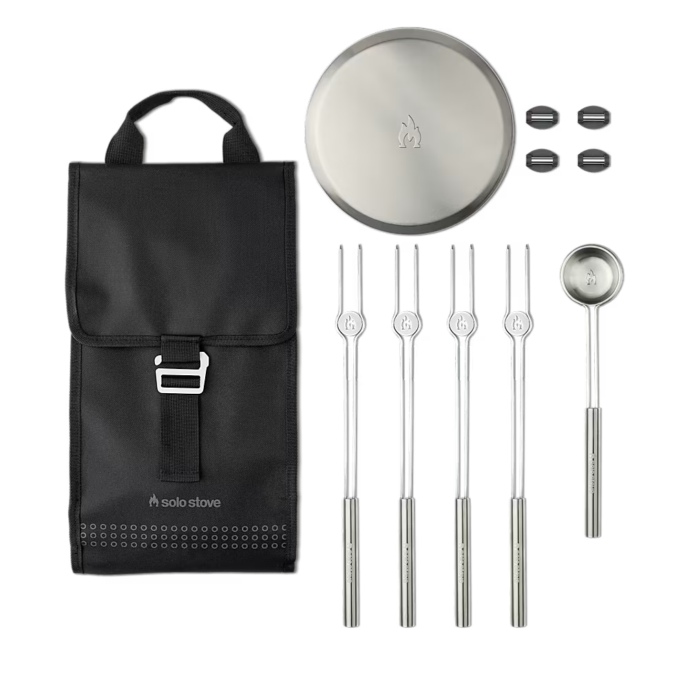 卓上で使える焚火台「メサ (廃盤)」と「メサ XL」にマッチした、便利なアクセサリーキット。焚き火の炎を利用した炙るなどの簡単な調理や、ペレットの投入、不要物の侵入防止などをより快適に行えるアイテムをまとめました。