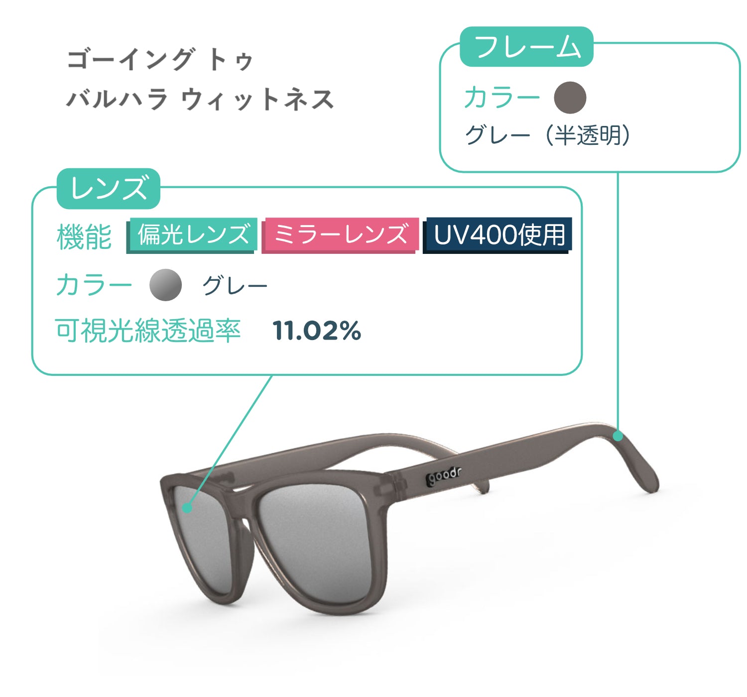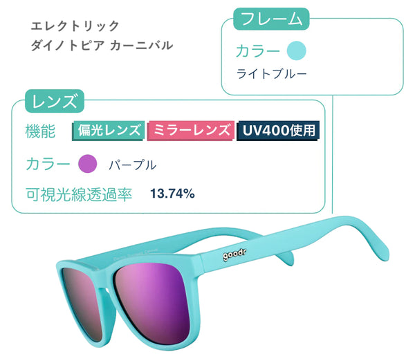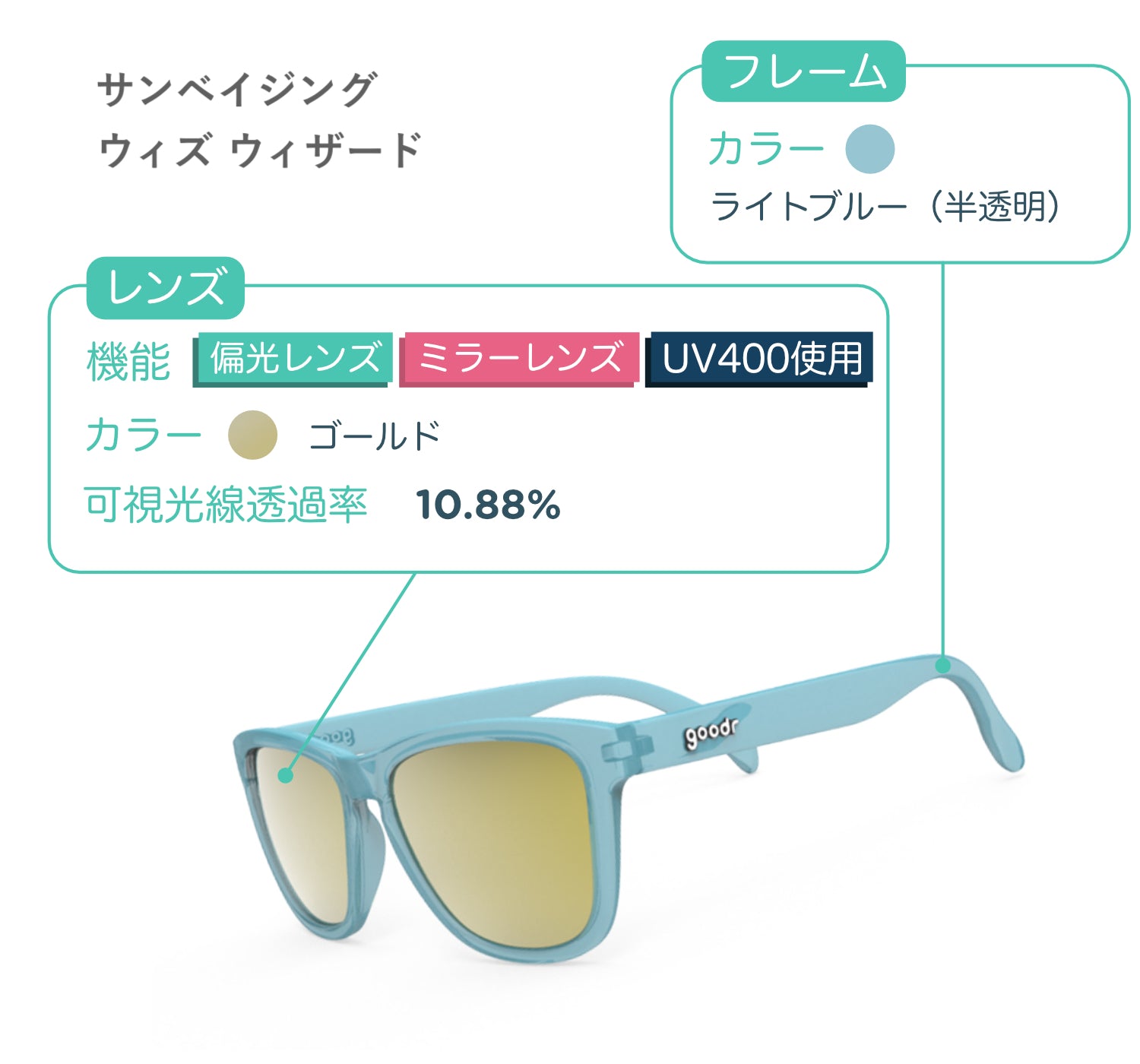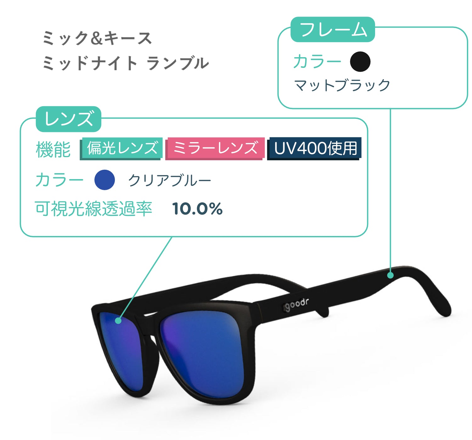 いままでの一般的なランニング用サングラスはオーバースペックかつ高価で、ランニング以外で気軽に着用するにはデザイン性が乏しいものが多く、購入のハードルが高いものでした。「goodr / グダー」はそうした問題を解決するべく、手頃でスタイリッシュなデザインで、パフォーマンスにも優れたランニング用サングラスを作ることを目指して、2015年にカリフォルニアで誕生しました。「滑らない」「跳ねない」「ALL偏光レンズ」の機能性に加え、手頃な価格で高いファッション性を備えた「goodr」は、あらゆるアウトドアアクティビティやタウンユースにも活用できる、カリフォルニアのハッピーな要素を盛り込んだ遊び心満載のサングラスブランドです。