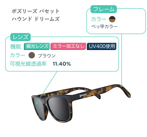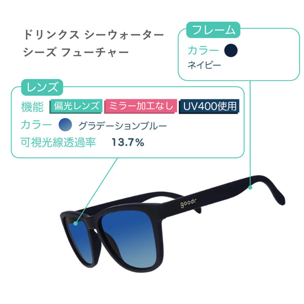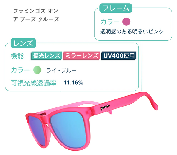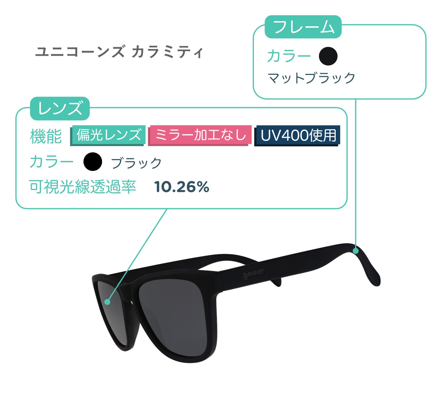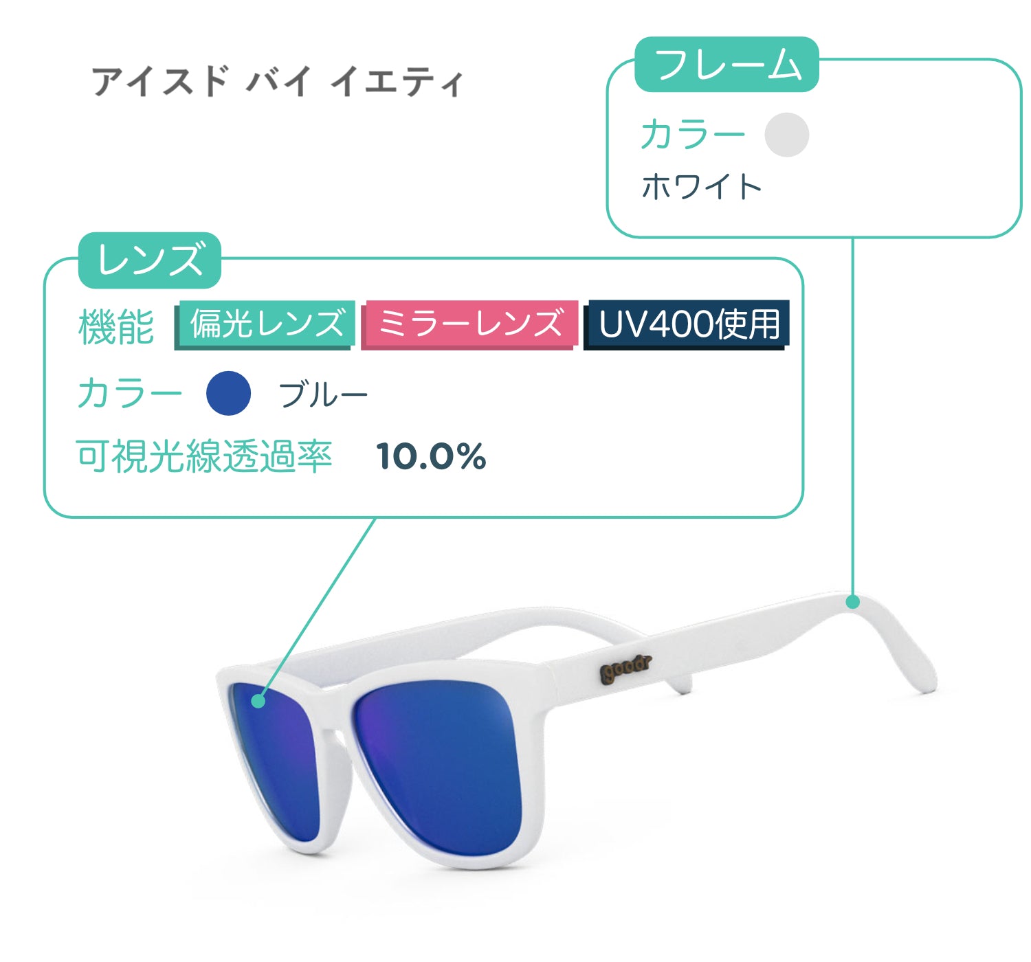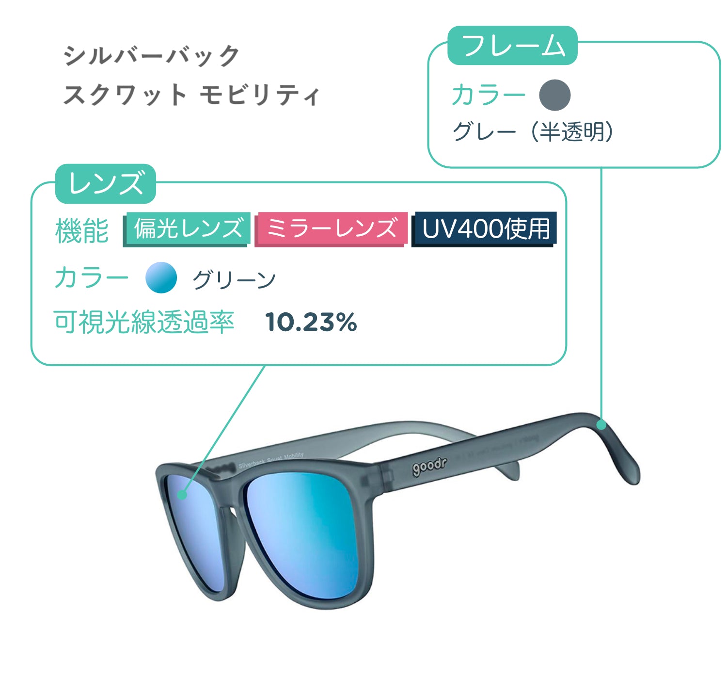 いままでの一般的なランニング用サングラスはオーバースペックかつ高価で、ランニング以外で気軽に着用するにはデザイン性が乏しいものが多く、購入のハードルが高いものでした。「goodr / グダー」はそうした問題を解決するべく、手頃でスタイリッシュなデザインで、パフォーマンスにも優れたランニング用サングラスを作ることを目指して、2015年にカリフォルニアで誕生しました。「滑らない」「跳ねない」「ALL偏光レンズ」の機能性に加え、手頃な価格で高いファッション性を備えた「goodr」は、あらゆるアウトドアアクティビティやタウンユースにも活用できる、カリフォルニアのハッピーな要素を盛り込んだ遊び心満載のサングラスブランドです。