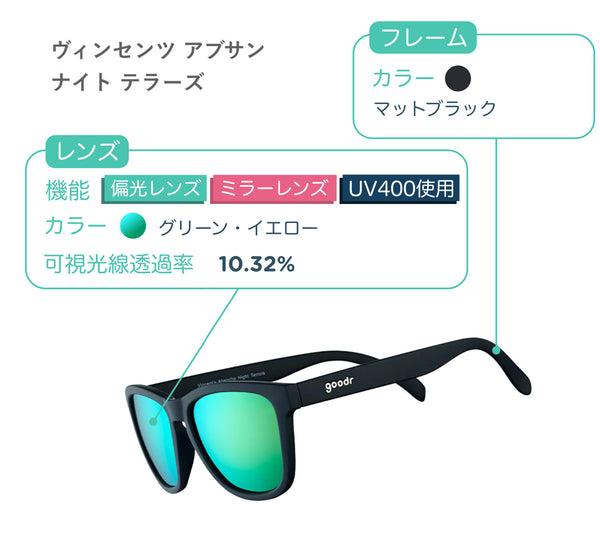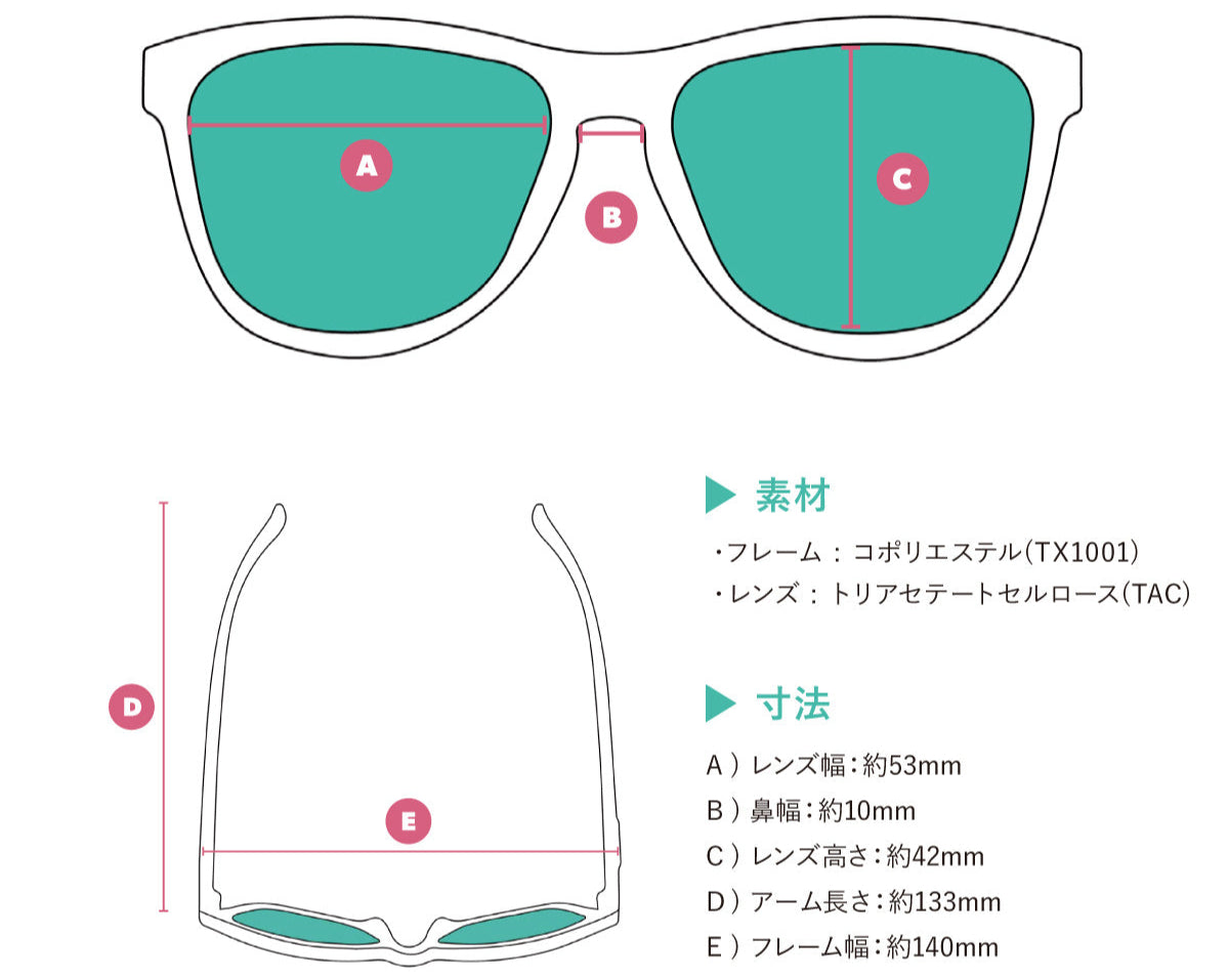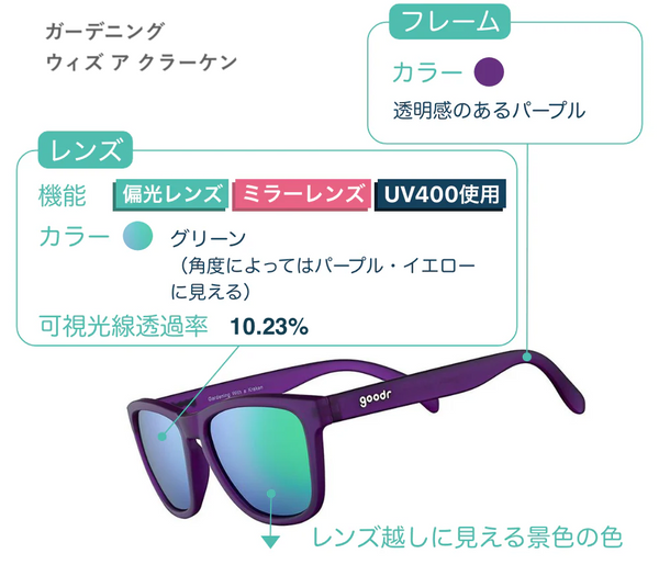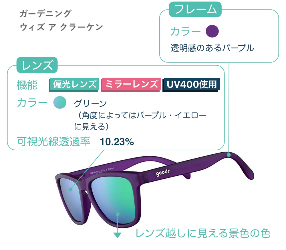 ・レンズカラー:グリーン (角度によってパープル、イエロー)