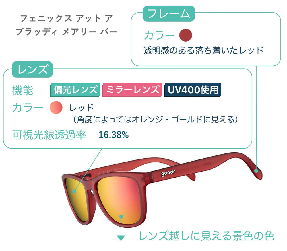 ・レンズカラー:レッド (角度によってオレンジ、ゴールド)