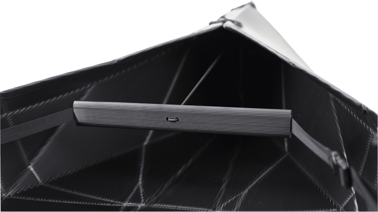 本体構造はとてもシンプル。ファルトボートのようにフレームを必要とせず、ボックスの状態から本体を広げ、折り目に沿って折って組み立てるだけであっという間にカヤックが完成します。レイクは最短約1分でセットアップできるため、現地に着いてからのスタートや、楽しんだあとの片付けが楽々です。