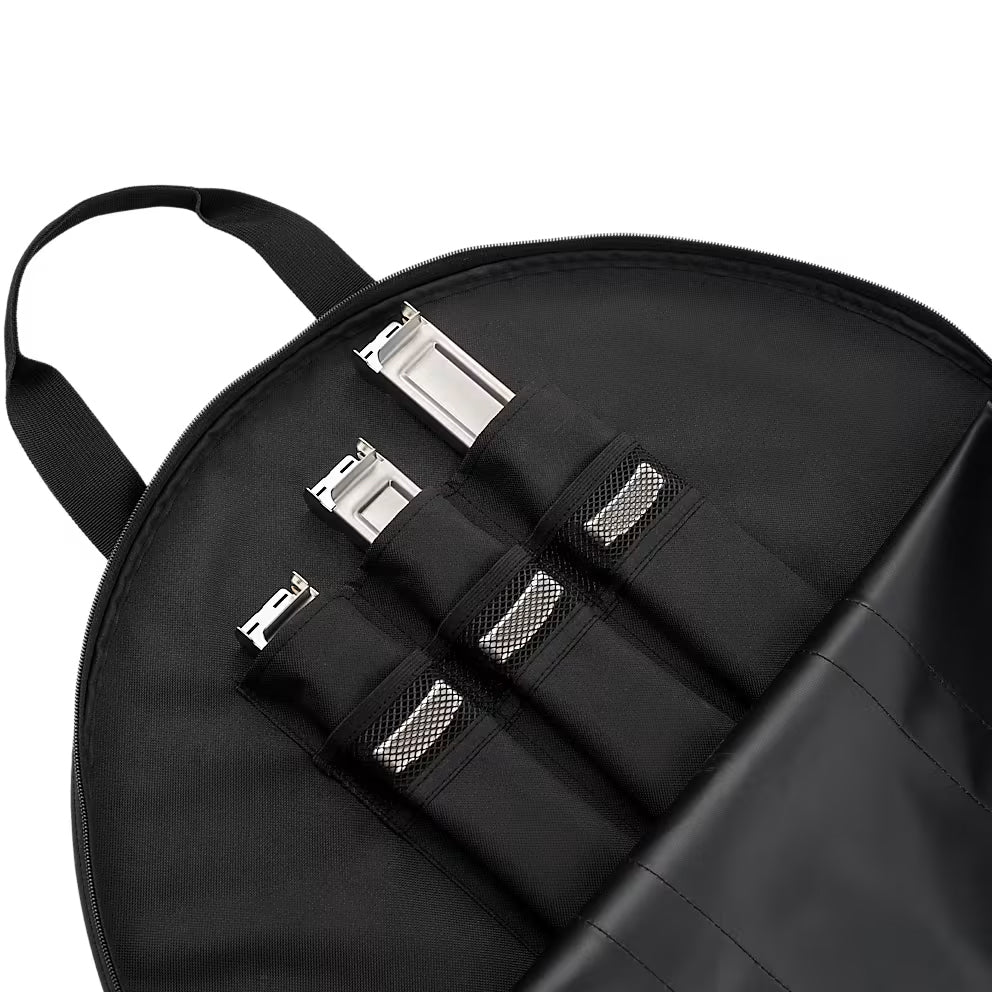 薄型のキャリーバッグは、保管する際にも幅の狭い空間に収納することができます。ハンドル付きで、引っ掛けての収納も可能。かさばらず、邪魔にならずに保管できます。付属のハンドルは耐久性も高くしっかりと持ち運べ、楽に運搬も可能です。