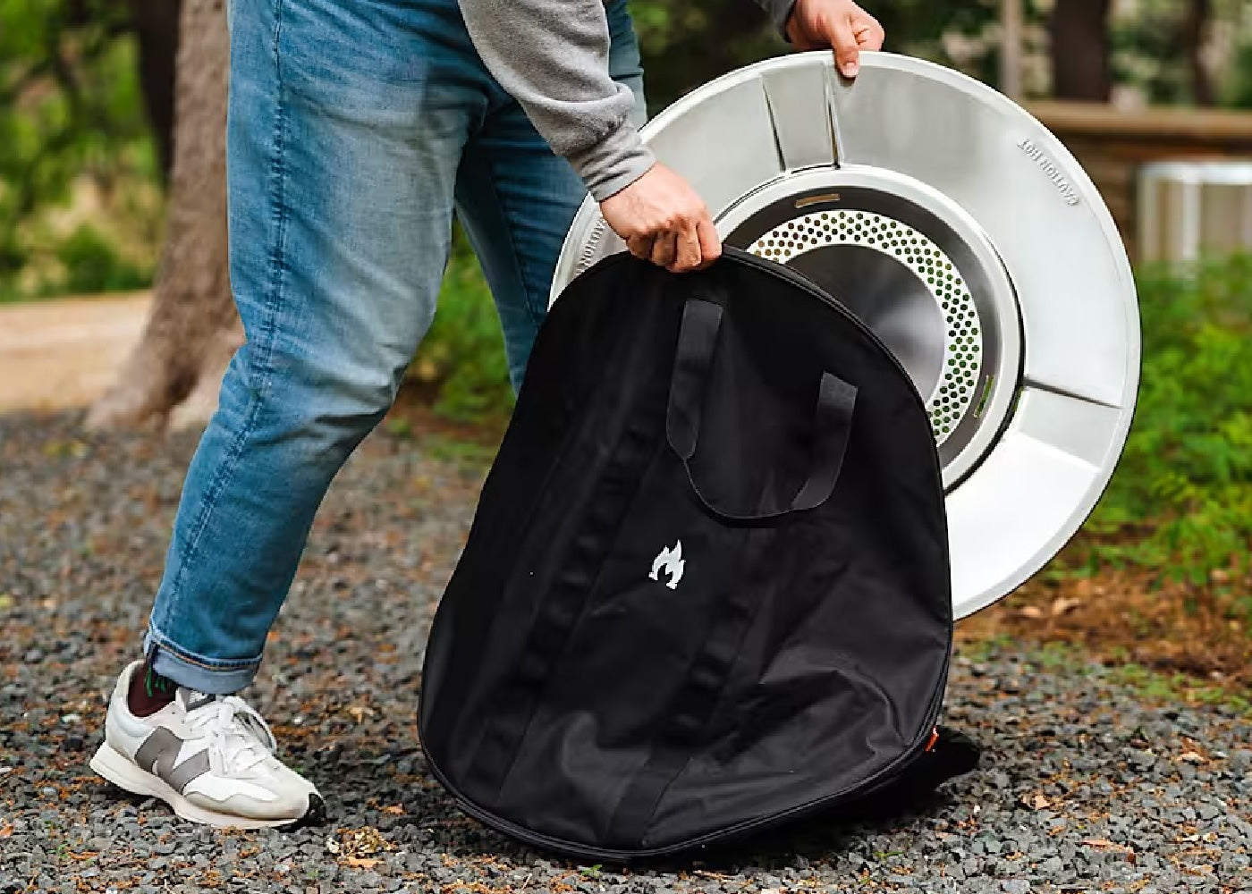 ※ファイヤーピット同様、よく冷めた状態で撤収をしてください。耐熱グローブなどで持ち上げ、一旦ファイヤーピットから離すと冷めるのが早くなります。